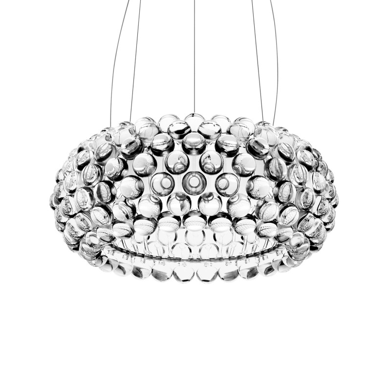 Pendulul Foscarini Caboche Media este o piesă de iluminat iconică, concepută de renumita designeră Patricia Urquiola. Structura sa spectaculoasă este compusă din zeci de sfere transparente din acrilic (PMMA) care înconjoară sursa de lumină, creând un efect strălucitor de refracție asemănător unui candelabru modern.