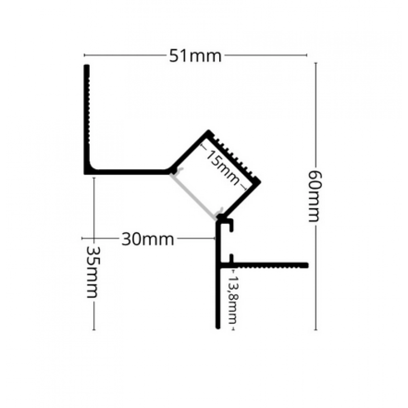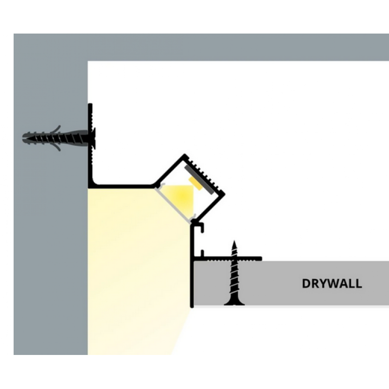 Profil din aluminiu de înaltă calitate, proiectat special pentru integrarea benzilor LED în scafe cu finisaj trimless (fără margini vizibile). Conceput pentru montaj în structura tavanului spre perete, cu banda LED montata in unghi de 45 grade, acest profil oferă un efect de iluminare indirectă elegant și un look modern minimalist.