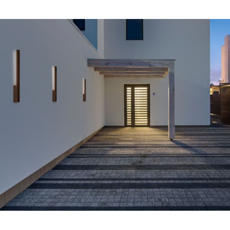 Construită pentru medii exterioare, lampa oferă protecție completă împotriva prafului și a jeturilor de apă (IP65), asigurând o durabilitate ridicată indiferent de condițiile meteo. Datorită tehnologiei LED, consumul de energie este redus și durata de funcționare este extinsă, iar designul minimalist și finisajul corten se potrivesc perfect cu arhitectura contemporană. Ideală pentru iluminare arhitecturală, fațade, grădini, alei și pereți exteriori.