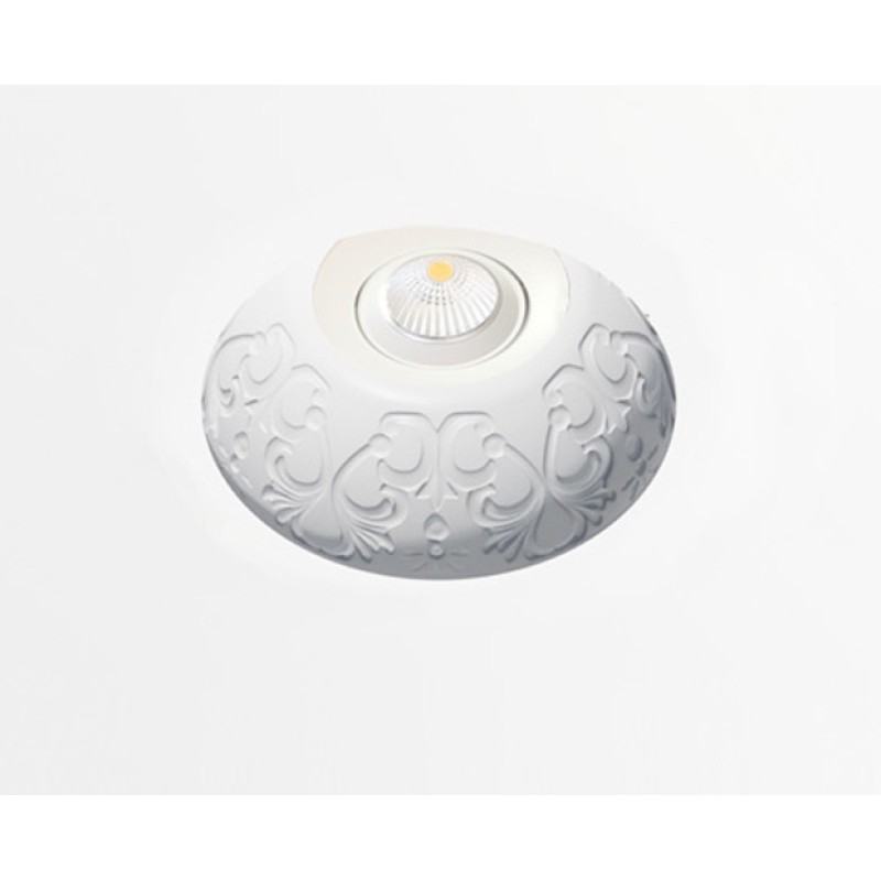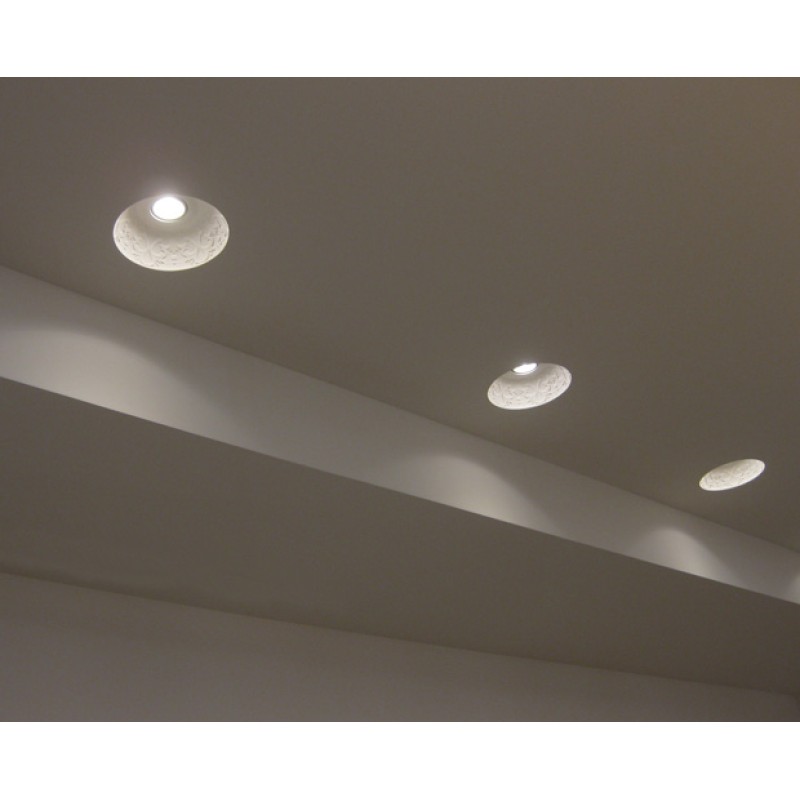 Spot din gips si fibra de sticla cu decor interor, bec LED integrat, ce se integreaza in tavanul fals din gips, se chitueste si se vopseste la culoarea tavanului.