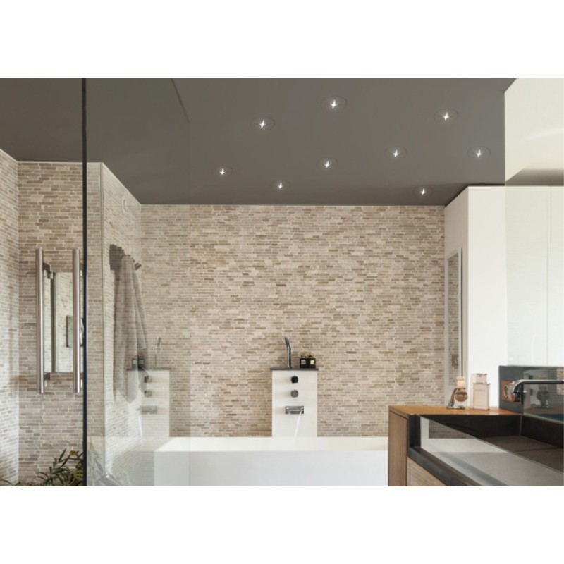 Spot din gips si fibra de sticla cu decor mini stea, bec LED integrat, ce se integreaza in tavanul fals din gips, se chitueste si se vopseste la culoarea tavanului.