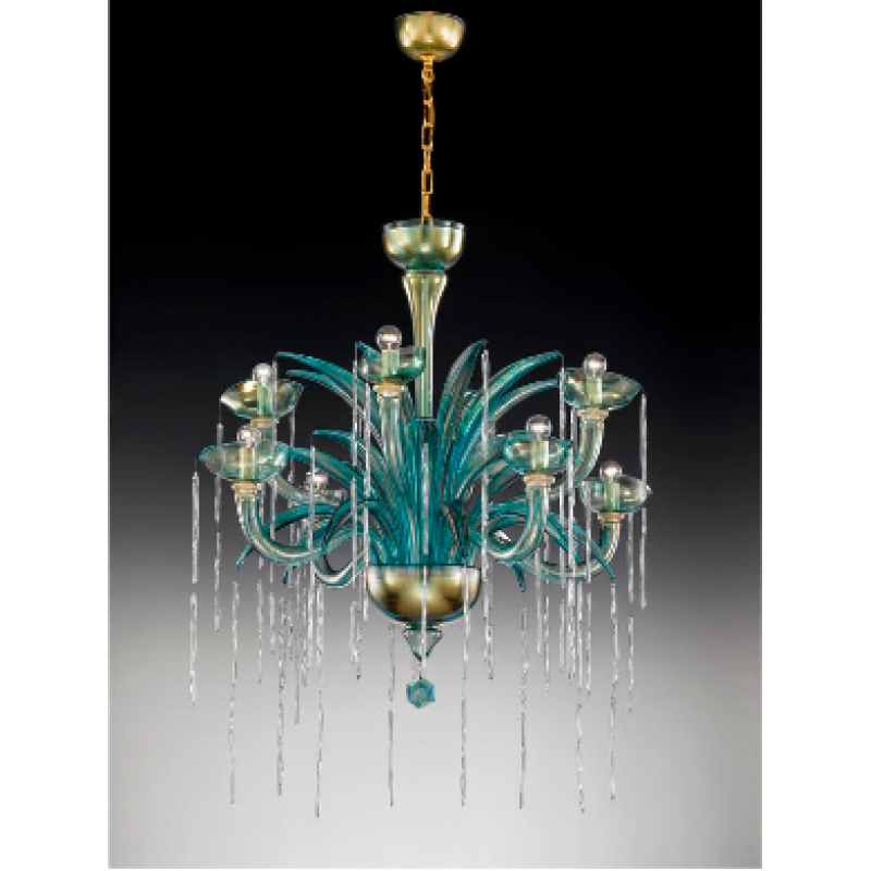 Candelabru de lux, din sticla de Murano lucrata manual in atelierele din Mirano, ce reprezinta unul dintre cele 4 elemente ale naturii, apa.