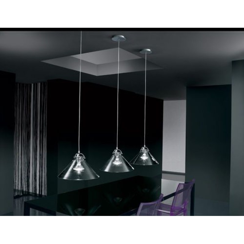 Detaliile cromate ale rozetei de conectare adaugă un plus de rafinament, iar materialele alese conferă durabilitate și un aspect estetic plăcut. Pendul Murano Tommy S completează cu stil spațiile interioare, aducând o lumină plăcută și o notă de eleganță clasic‑contemporană.