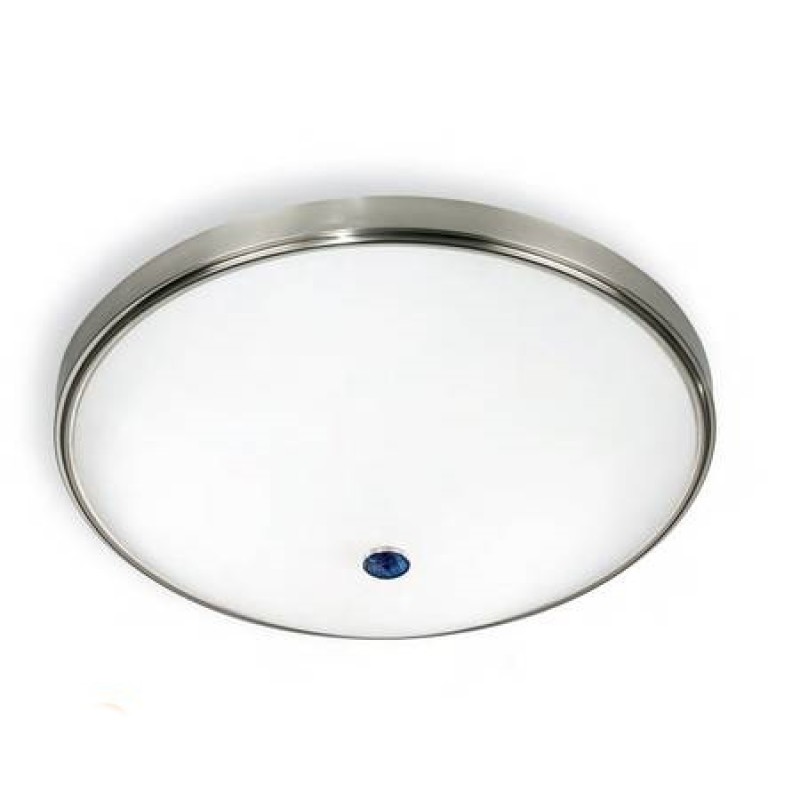 Plafoniera Ravenna 2116 D74 E27 este un corp de iluminat elegant și impresionant, perfect pentru spații interioare cu design modern sau art-deco. Realizată manual în Italia, această plafonieră de dimensiuni generoase (diametru 74 cm, înălțime 20 cm) combină sticla sablată intens cu un cadru metalic nichelat periat și un detaliu central de un albastru adânc, oferind un punct focal sofisticat oricărui living, dormitor sau hol. Produsul este echipat cu 6 socluri E27 (max. 60 W LED fiecare), ce permit utilizarea de becuri pe gustul tău pentru o lumină ambientală caldă și personalizată. Becurile se achiziționează separat. (230 V, garanție 24 luni). Dimensiuni: diametrul 74cm, inaltimea la tavan 20cm.