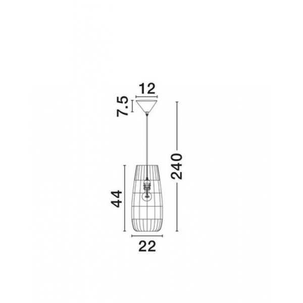 Lampa mediteraneana, suspendata din plasa metalica cu tesatura din ratan natural si bambus, cu dulie pentru bec LED si cordon electric negru pentru aspect luxos. Reglaj in inaltime pe lungime de 240cm. Destinat spatiilor comerciale sau de locuit.