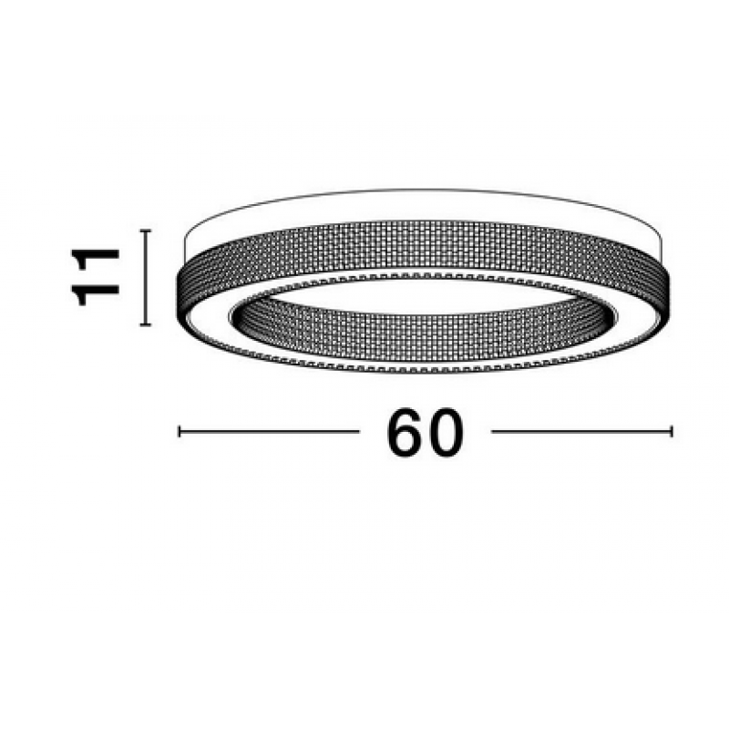 Această plafonieră LED dispune de modul LED integrat, este dimabilă prinTriac și funcționează la tensiune 220-240 V. Realizată din metal placat auriu și plastic PMMA opal de calitate, are diametrul de 60 cm și o înălțime compactă de 11 cm, fiind ideală pentru tavane standard.