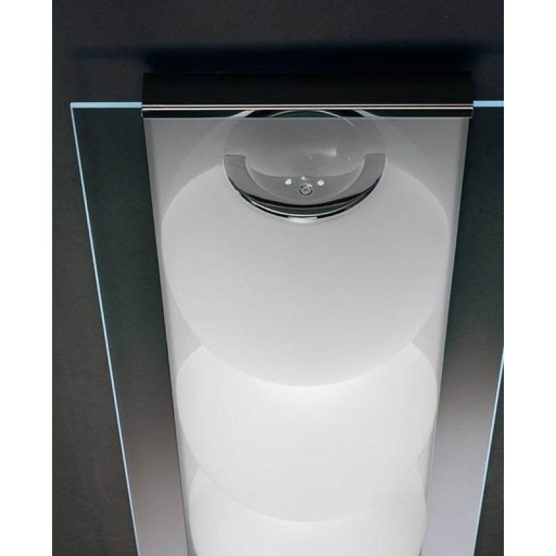 Plafoniera Murano Perlage A3P3, semnată de celebrul designer Oriano Favaretto, este o piesă de iluminat elegantă și rafinată, realizată din sticlă de Murano alb satinat prelucrată manual. Designul său distinctiv este compus din 3 semisfere unite artistic pe un suport din cristal dreptunghiular transparent, creând o lumină caldă și plăcută, perfectă pentru living, dormitor sau alte spații interioare elegante.