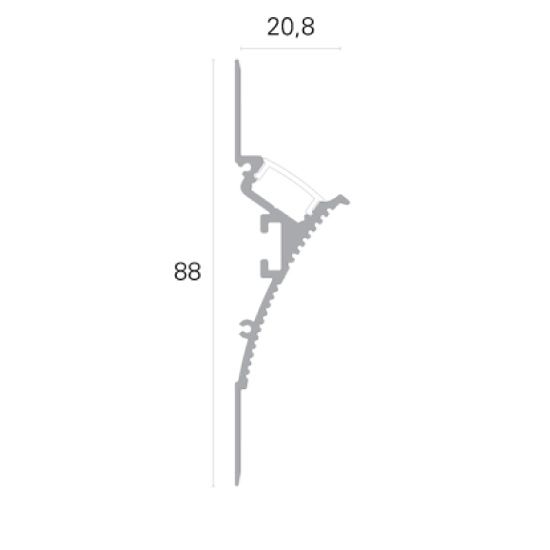 Profil arhitectural din aluminiu pentru bandă LED, conceput pentru montaj ascuns vertical, fără margini vizibile. Acest profil trimless permite crearea unor linii de lumină indirectă elegante pe perete, oferind un aspect minimalist și un efect vizual modern. Finisat în culoare alb mat și compatibil cu diverse tipuri de benzi LED (nu este inclusă în pachet), profilul este ideal pentru proiecte de iluminat interior în locuințe sau spații comerciale. Accesoriile de montaj se achiziționează separat.