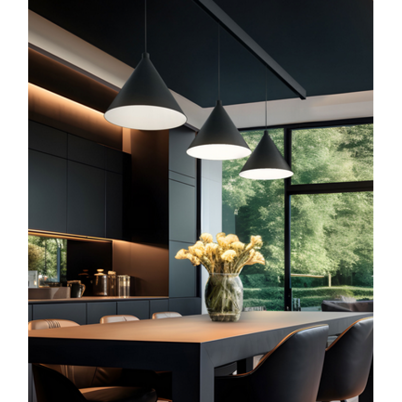 Lampa suspendata pentru montaj in sina magnetica Shift 48V. Culoare negru, diametru 245mm si sistem suspendare ajustabil maxim 1350mm.
