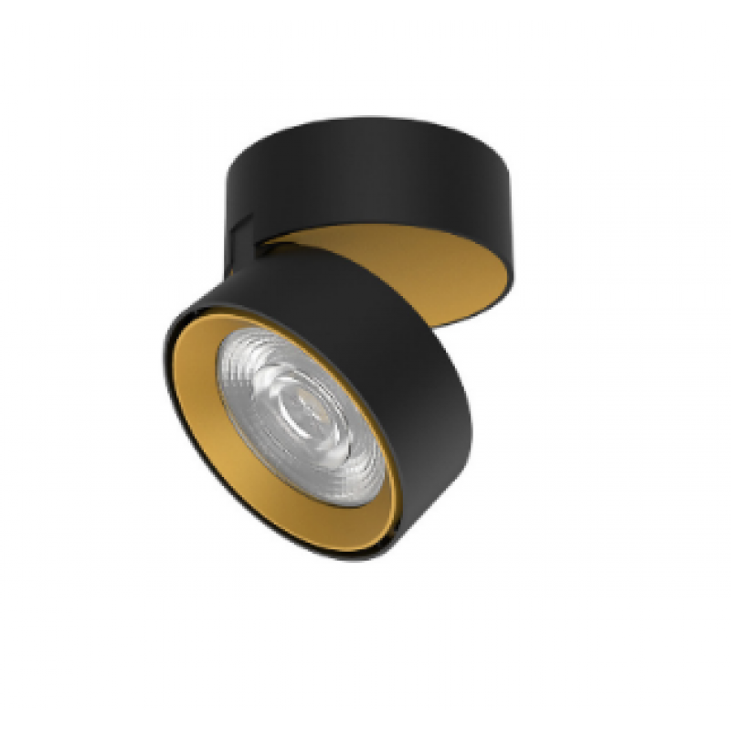 Spot aparent LED directionabil pe doua directii, pentru utilizare rezidentiala. Driver inclus, sistem optic inclus, pentru reducerea stralucirii in campul vizual, culoare negru cu auriu.