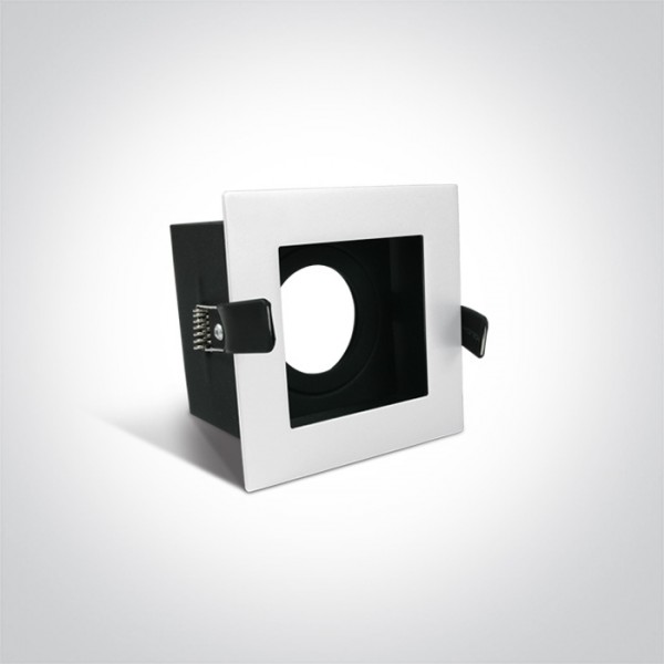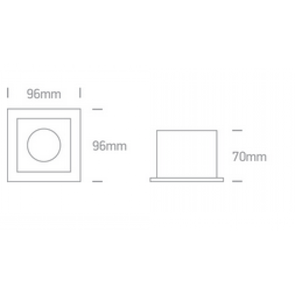 Spot pentru bec LED cu dulie inclusa, destinat incastrarii in tavan fals cu spatiu de minim 140mm deasupra, cu rama vizibila patrata si becul montat mai sus de rama pentru efect dark light cu protectie vizuala, cu dimensiunile de 96mmx96mm, inaltimea ramei de 70mm si orientabilitate pe o singura directie. Destinat pentru spatii comerciale sau de retail.