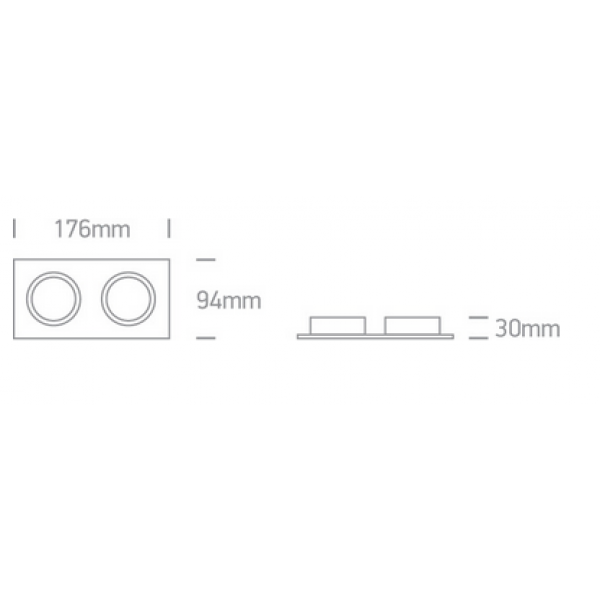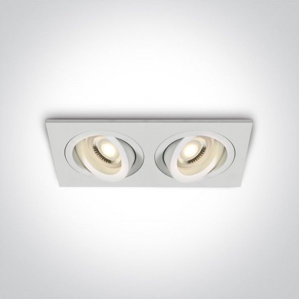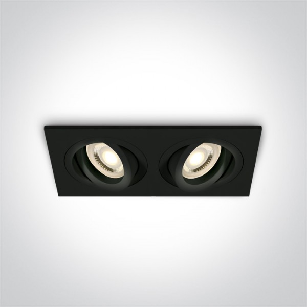 Spot incastrat cu rama patrata, cu 2 spoturi orientabile, pentru 2 becuri cu LED GU10. Are rama subtire interioara, in care se monteaza becul. Placa suport pentru spoturi este la fata tavanului, pentru o linie continua a tavanului. Se poate utiliza in spatii interioare comerciale, de retail, medicale. Se monteaza usor, si becul se schimba prin fata, simplu fara demontarea lui.