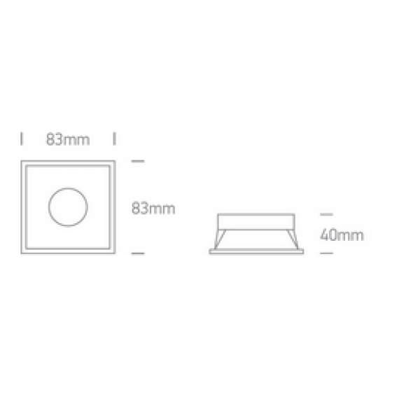 Spot incastrat fix patrat, pentru bec LED 10w, semitrimless, cu rama subtire cat sa acopere gaura in tavan, realizat cu tehnologie Dark-Light pentru protectie vizuala a ochiului in spatiu luminat, cu dimensiunea exteriora de 83mmx83mm si inaltimea ramei de 40mm ce necesita inaltimea spatiului de montaj de 120mm. Este dotat cu dulie GU10, pentru bec LED pe 230V si se fabrica in culoarea alb mat. Este ideal pentru spatii rezidentiale si spatii cu utilizare standard.