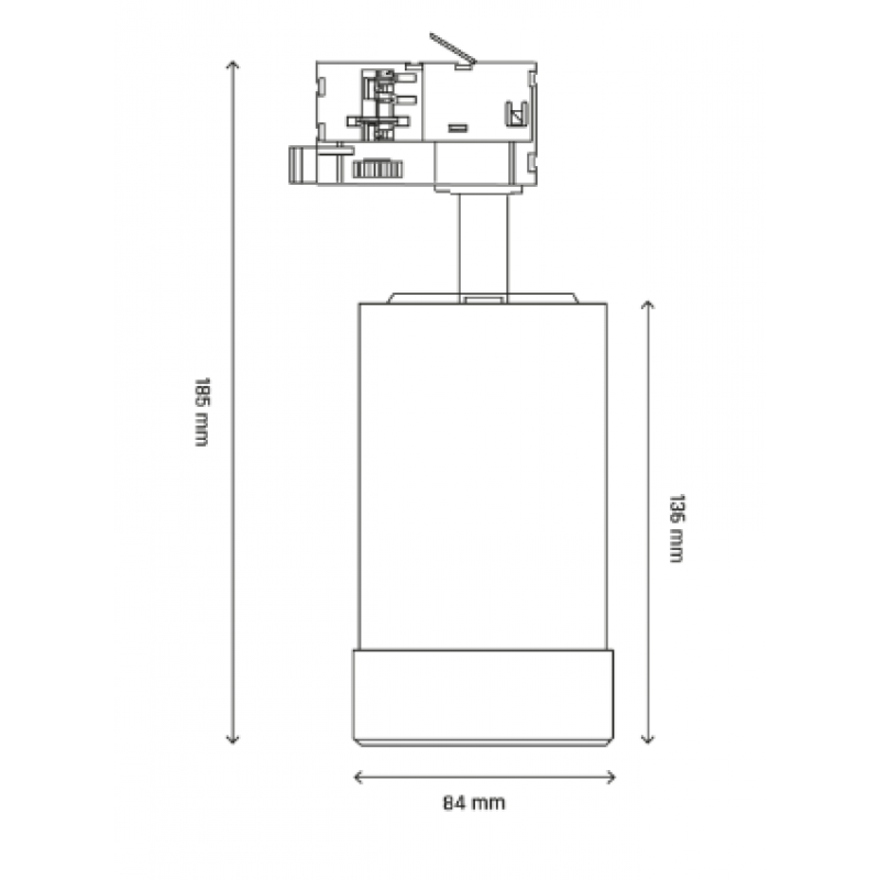 Proiector LED pentru sina standard Eurotrack, 3+1, cu protectie anti-glare la orbire, culoare alb sau negru, cu orientabilitate 350 grade pe orizontala si 90 pe verticala, cu focalizare a fascicolului intre 20 si 45 grade. Are posibilitatea de schimbare a culorii luminii intre 3000K, 4000K si 6000K.