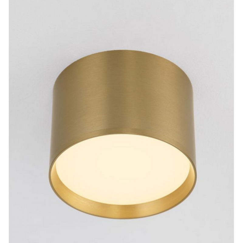 Spot rotund cu lumina LED cu geam frontal prismatic pentru montaj aparent pe perete sau tavan.Culoare mat-gold luxoasa, inaltime mica de 86mm, diametru de 120mm. Destinata pentru holuri, coridoare sau vitrine cu montaj la interior.